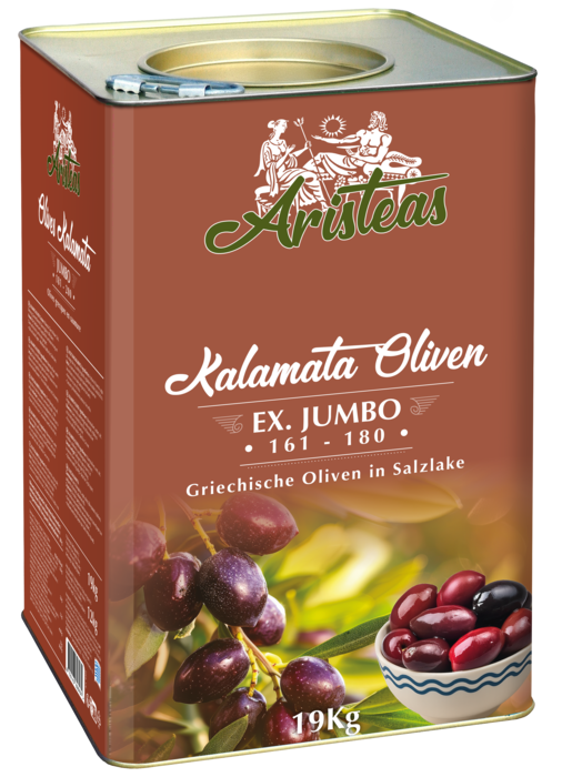 Die griechische Kalamata-Olive Jumbo Extra von Regina ist eine große, schwarze Olive. Unverzichtbar in der griechischen Küche. Oder als Vorspeise.